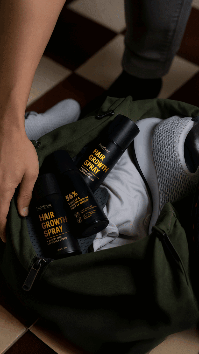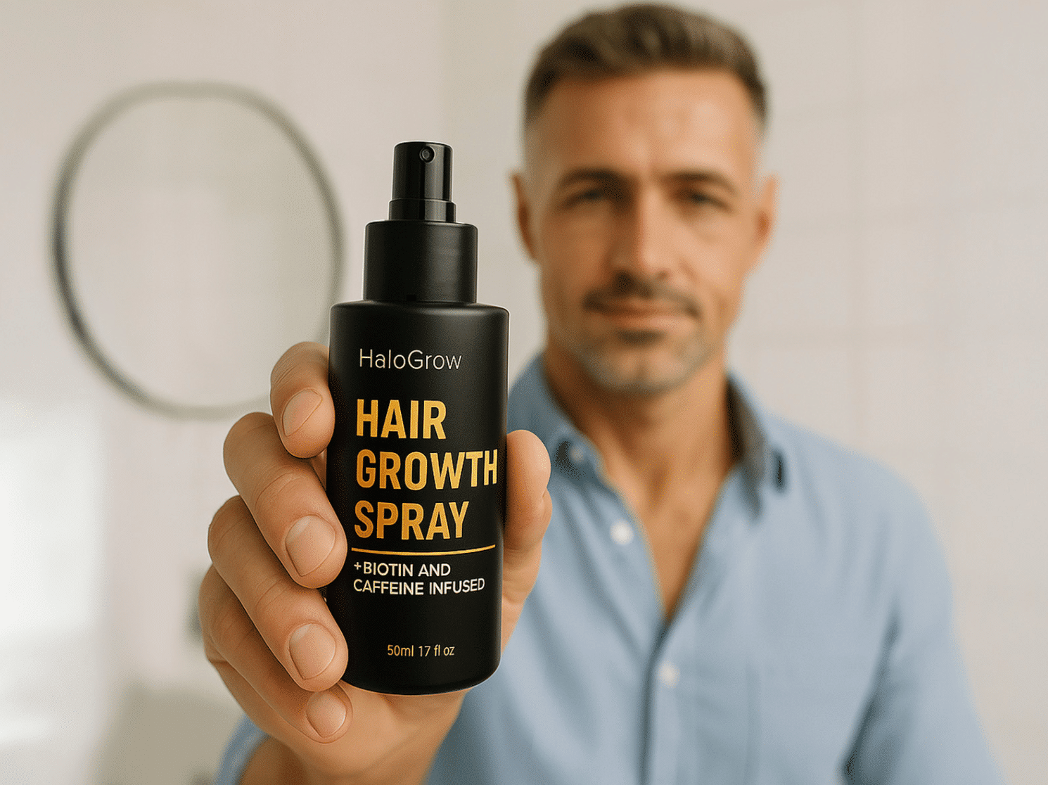 HaloGrow solves the two biggest problems with hair loss treatments: ineffectiveness and inconvenience. Most guys quit using Rogaine because it makes their hair look greasy and flat. HaloGrow uses a lightweight, micronized spray that penetrates the scalp instantly and dries invisible. You can spray it on in the morning, style your hair, and go to work without anyone knowing.